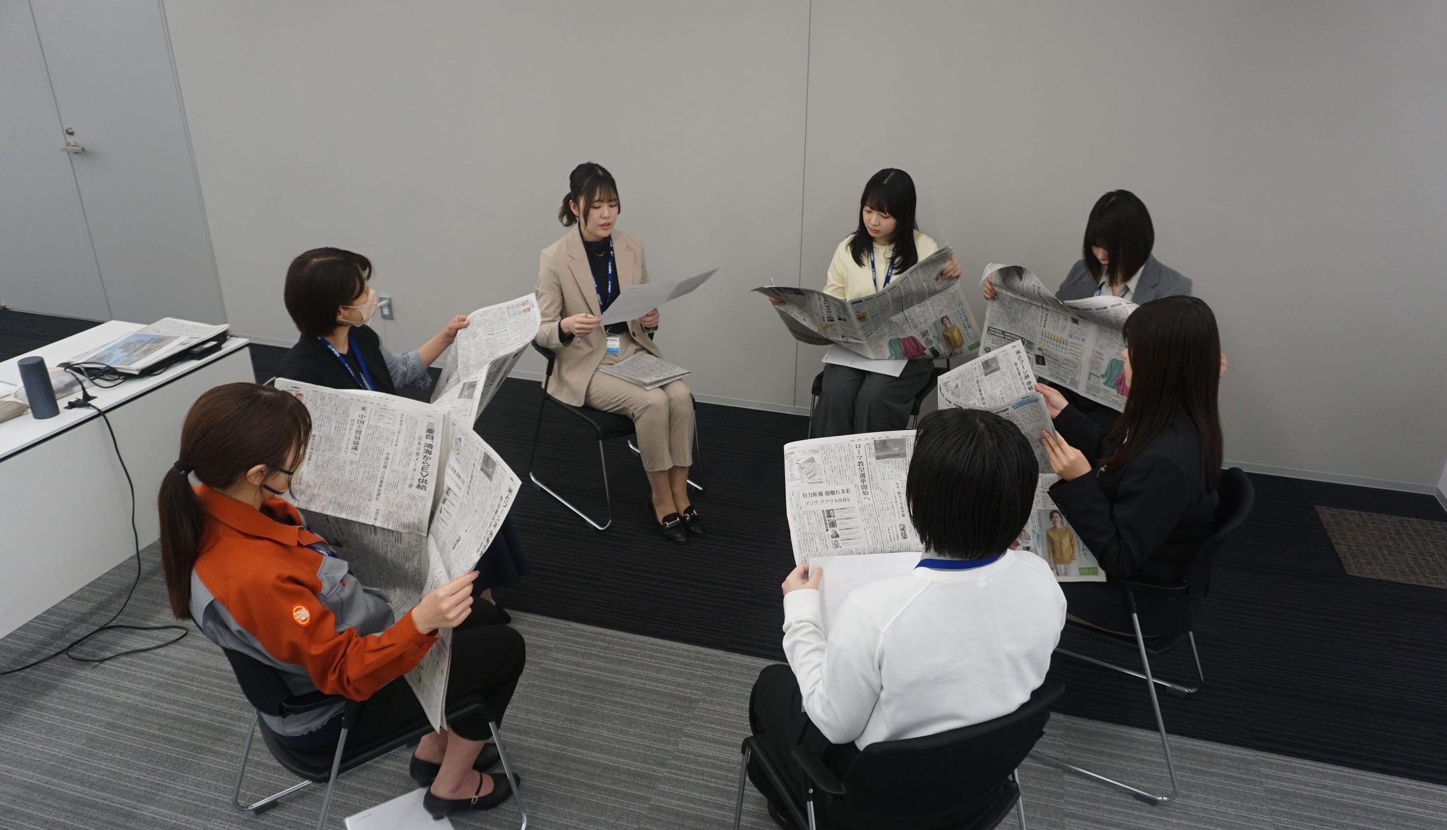 山陰中央新報社 様 主催の出前 ビジネス講座で、新聞を読むことを通して仕事に必要な情報収集力や発信力を磨くことを目的としています。